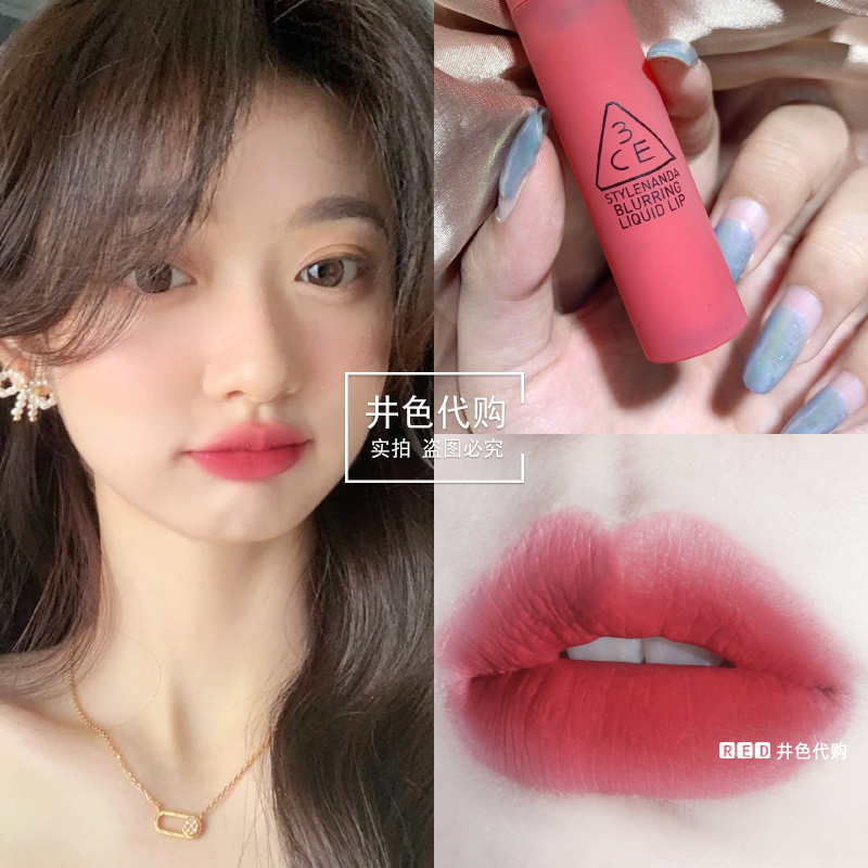3ce mousse lip glaze peach pumpkin color velvet matte pseudo plain color cinnamon milk tea bean paste powder nude color lipstick