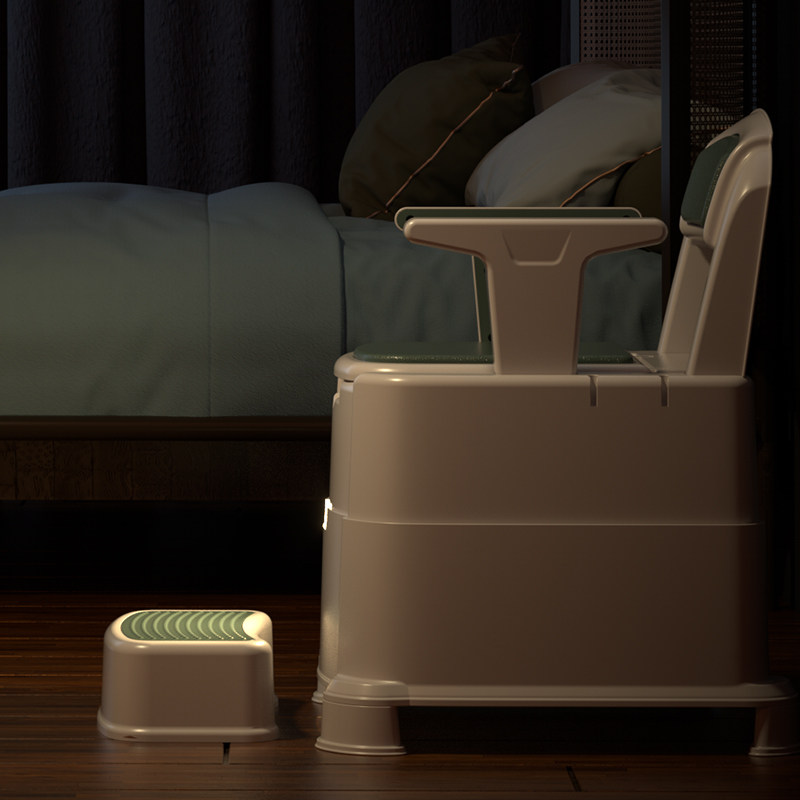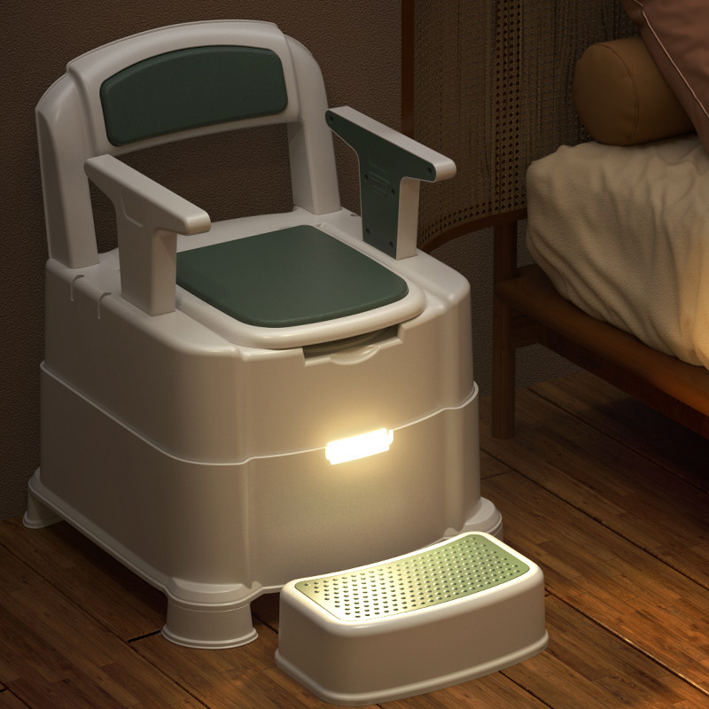 Old man sitting in a chair household mobile toilet reinforced toilet with physical and mental impairment for elderly people in rural areas with anti-slip simple chair