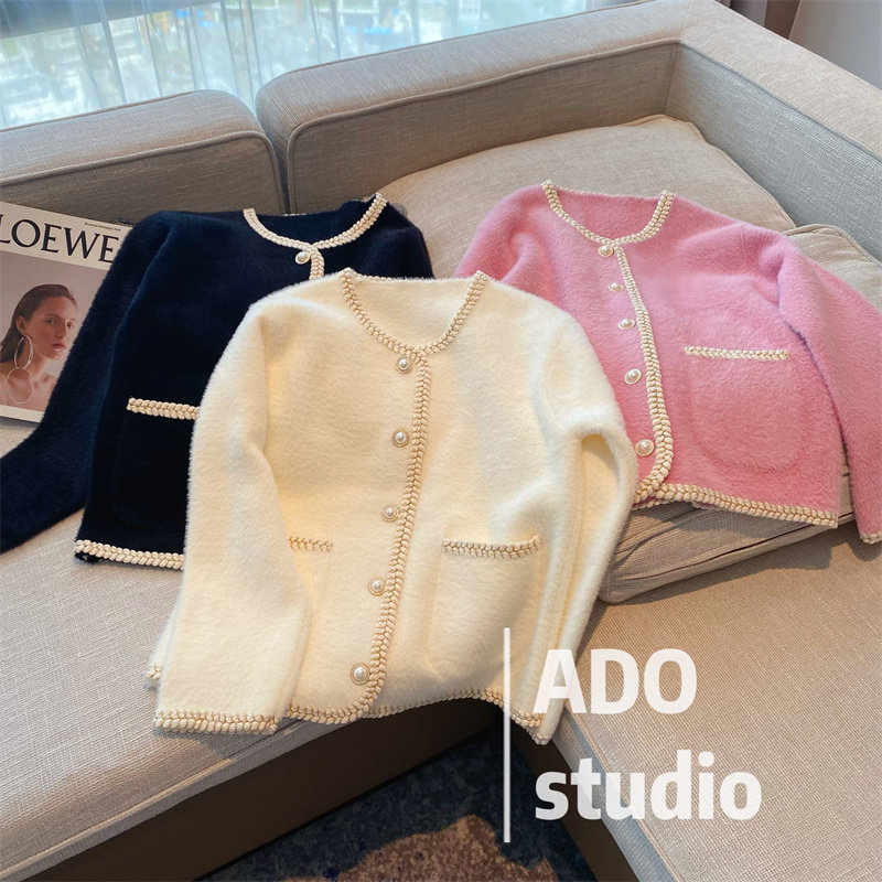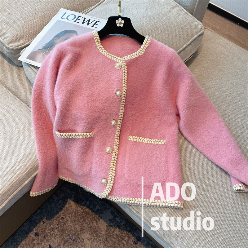 Small Fragrant Wind Imitation Mink Cashmere Cardiff Coat Woman Autumn Winter New 100 Hitch Loose Foreign Pie Pink Sweater Jacket Jacket