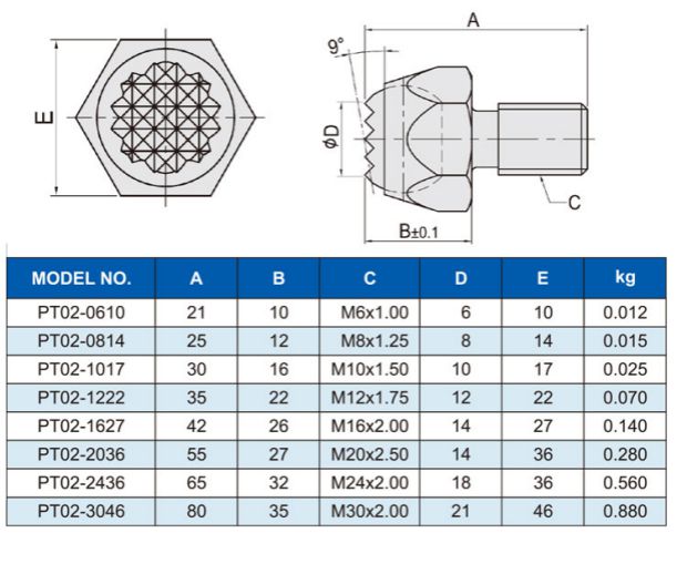 PT02-0610(M6×21)PT02-0814(M8×25)PT02-1017(M10×30)PT02-1222(M