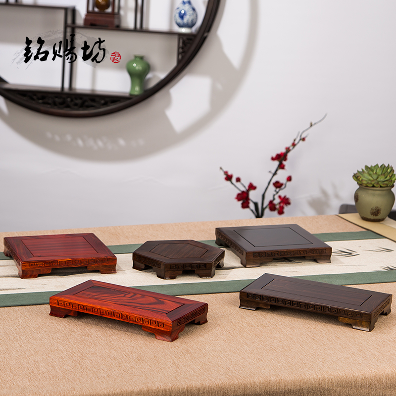 Thin rectangular octagonal ebony solid wood base Buddha statue ornament flower bonsai purple sand pot vase Guanyin bracket