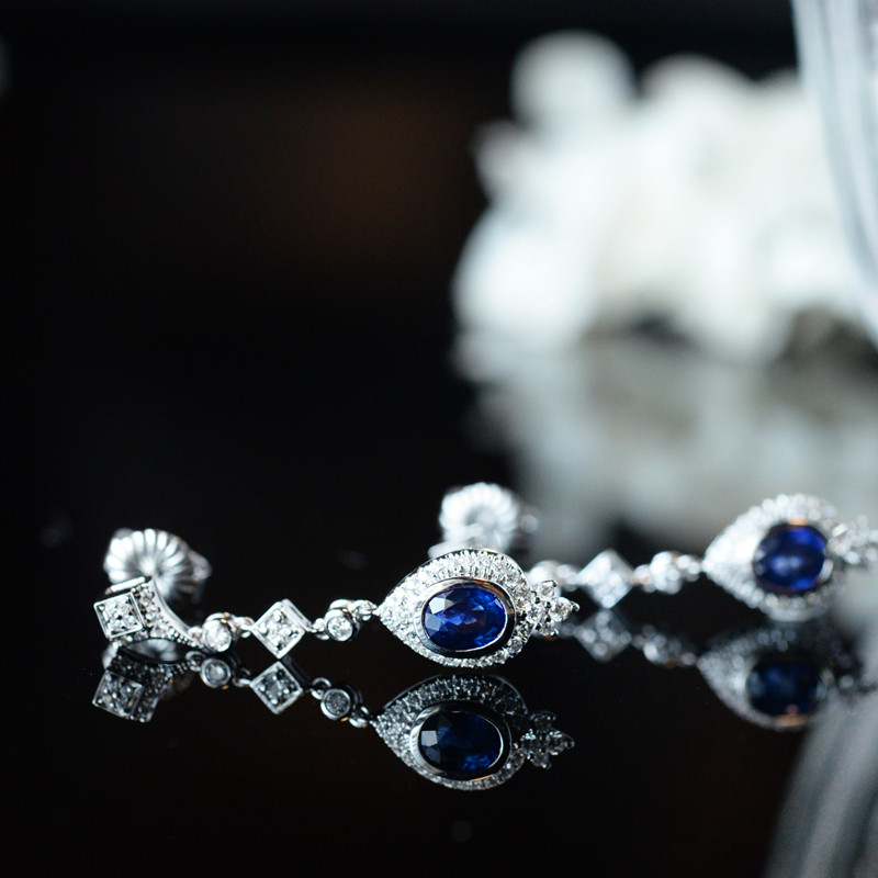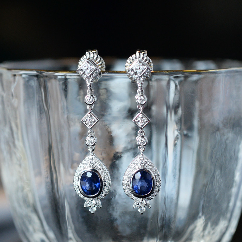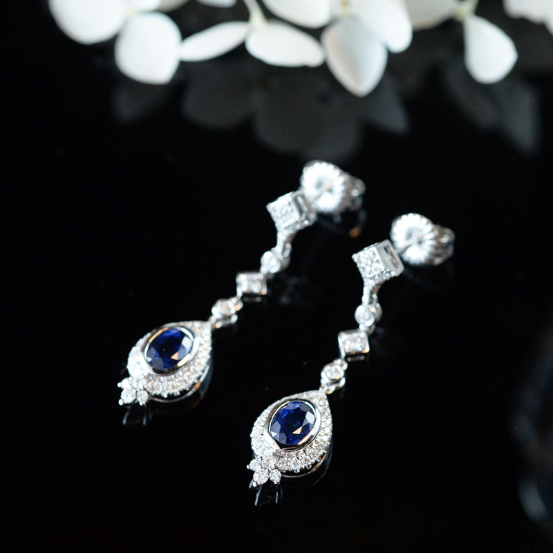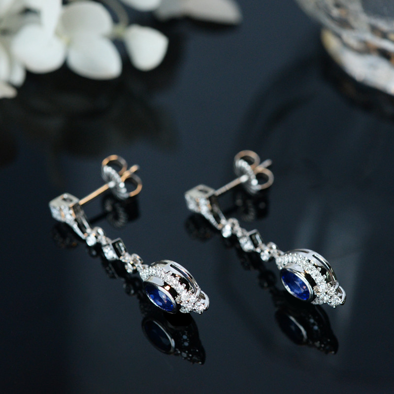 "Weijia" Qingyun high-quality royal blue natural sapphire inlaid diamond 18K white gold ear pendant