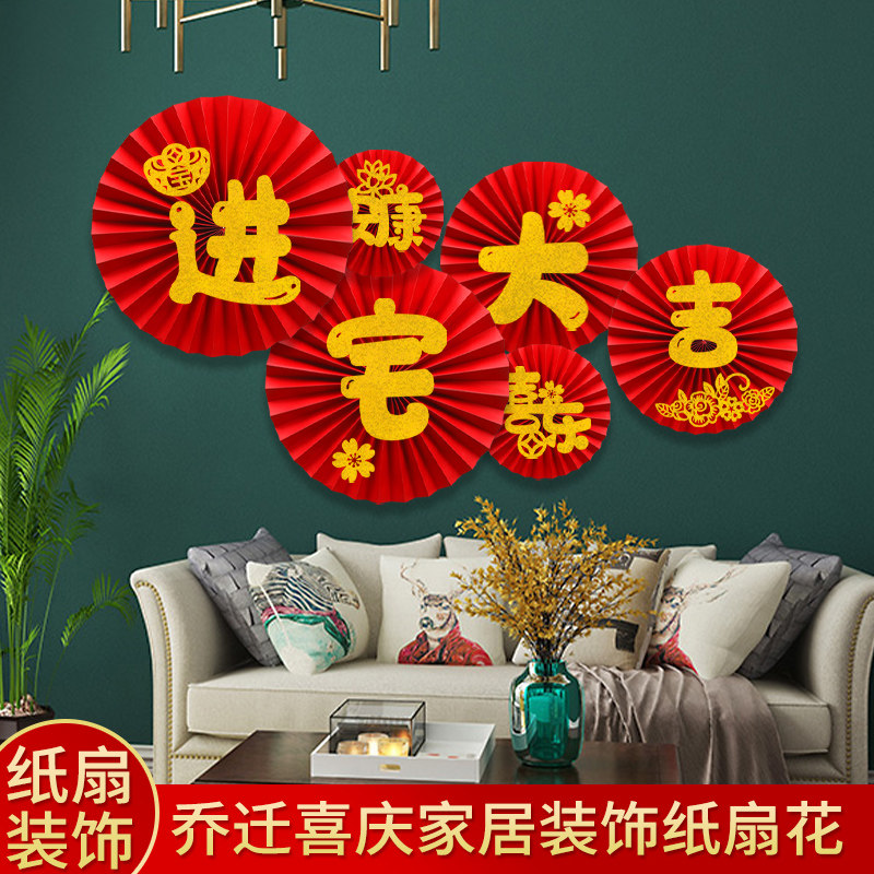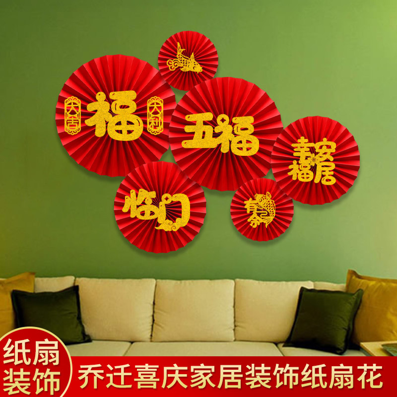 Joe Relocation Happy Decoration Placement Fu Character Paper Fan Flower Home Living Room New House Moving New Residence Ritual Supplies