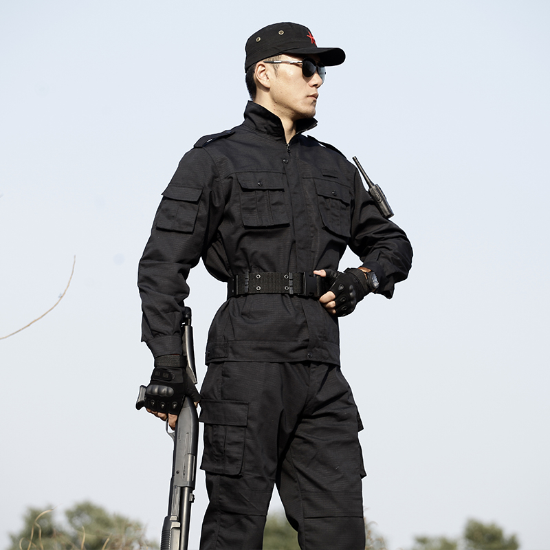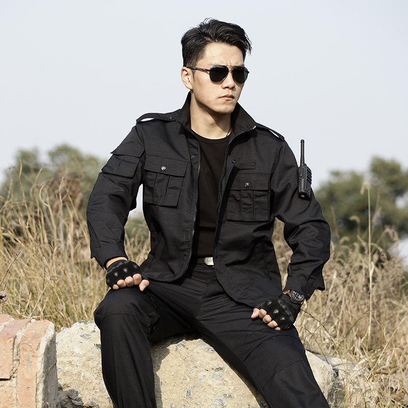 Spring Autumn Season Security Combat Training Suit Men's Work Clothes Black Combat Training Wear Wear Wear Tooling Women Multiple Pocket Labor Conserved