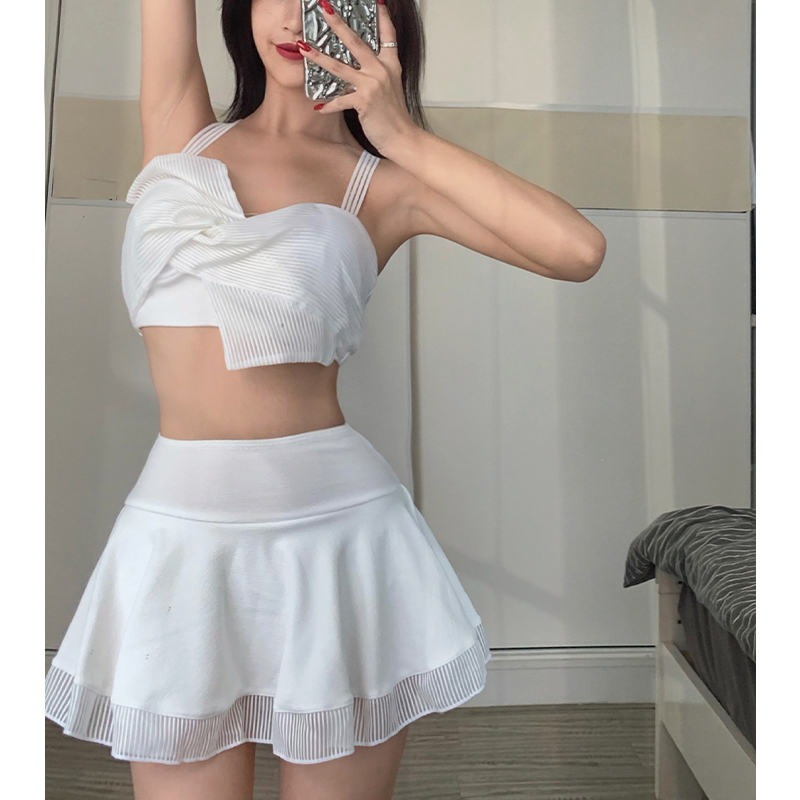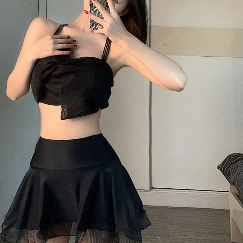Black bow tie steel entrusted with high waist skirt hem Andromeda woman Fan two-style bikini Summer spa display slim swimsuit