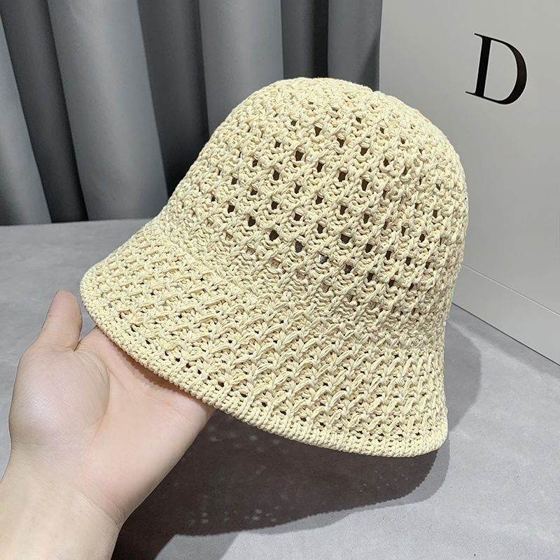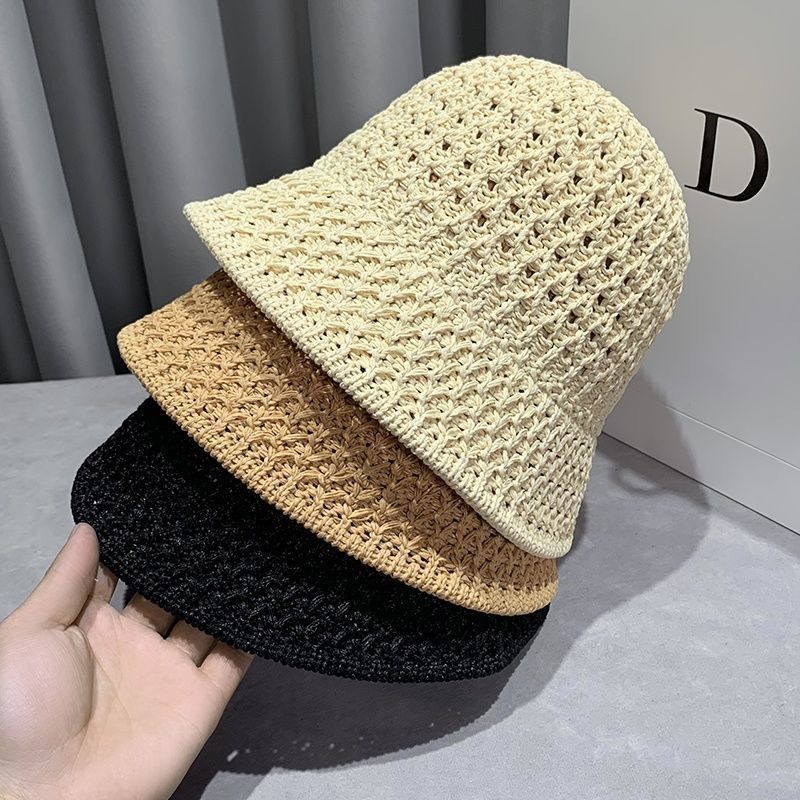 Hat female spring and autumn ins tide hollow knitted fisherman hat Korean version face small basin hat suitable for round face bucket hat