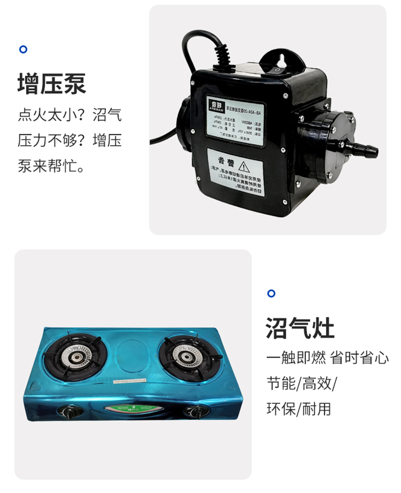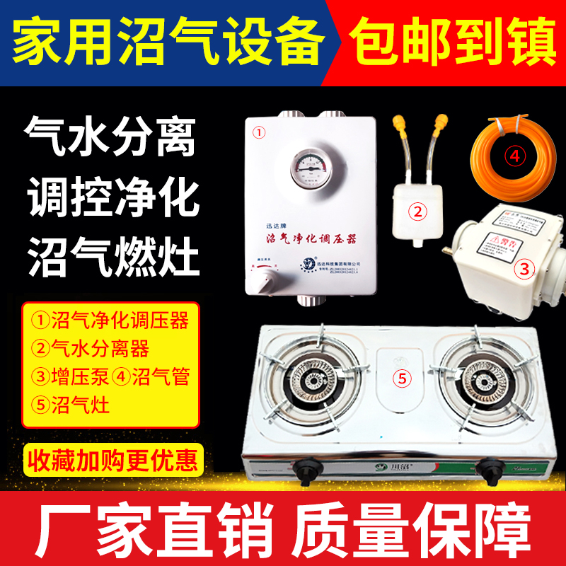 A complete set of equipment for biogas pools, household booster pumps, desulfurization purifiers, biogas air ducts, gas-water separators, and fire stoves