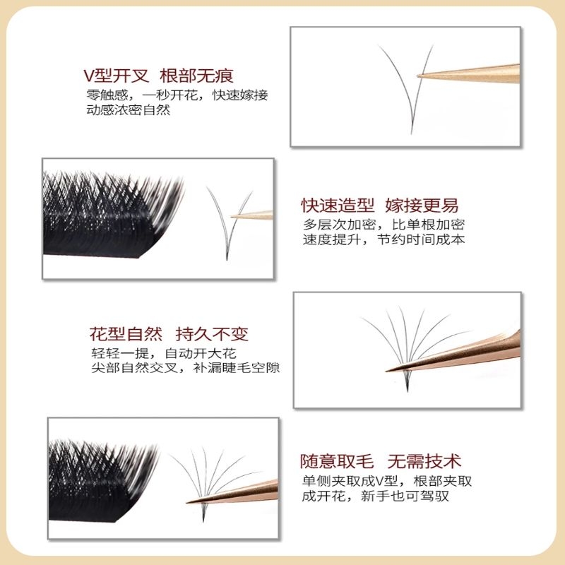0 05-05 round V Fite tail flower double sheng fake eyelash grafting natural thick and dense ultra soft ferret matt one second flowering