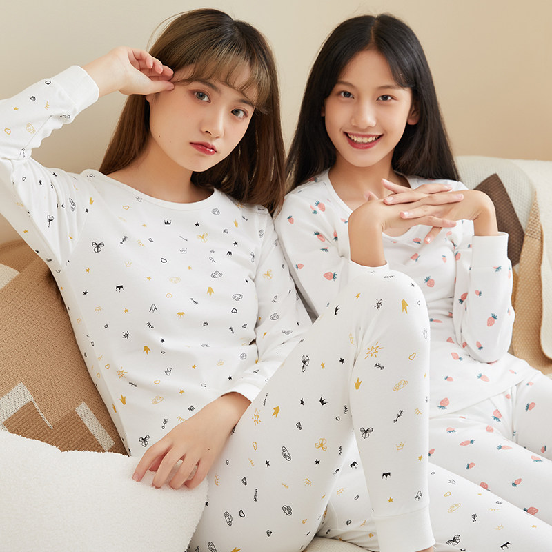 Baili girl cotton autumn clothes sanitary pants women's set students thin cotton sweater big children spring and autumn hot clothes