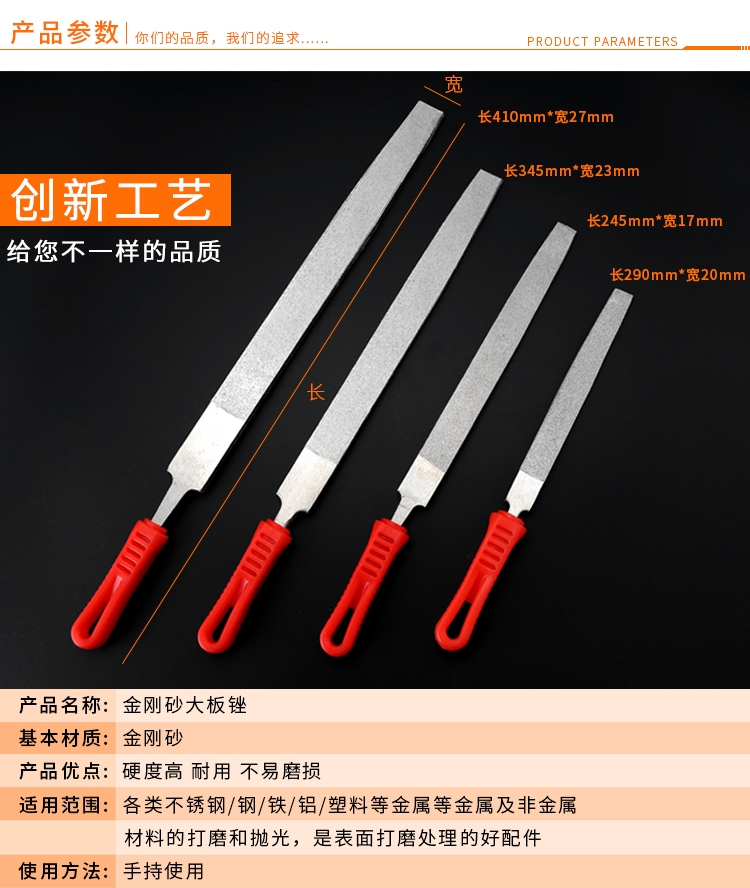 Diamond alloy filing knife large plate filing flat triangular semicircle stainless steel filing knife 6 inch 8 inch 10 inch 12 inch suit