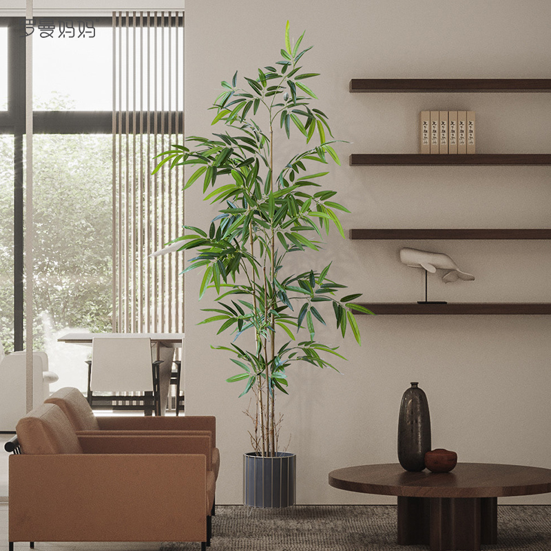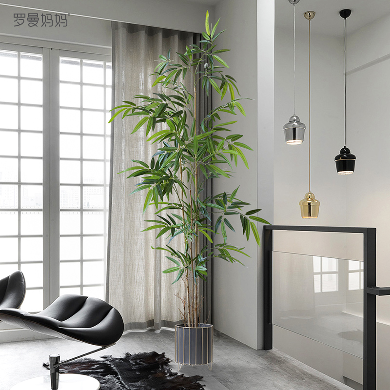 Roman Mom Nordic Indoor Simulation Plant Big Leaves Bamboo Landing Pot Living Room Corner Decorated Green Plant