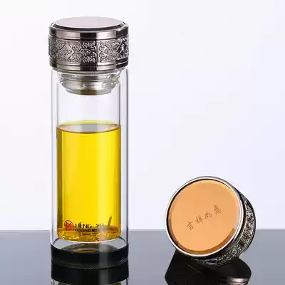 Thickened double-layer glass household large-capacity water cup with lid High temperature teacup for men and women portable anti-hot tea cup