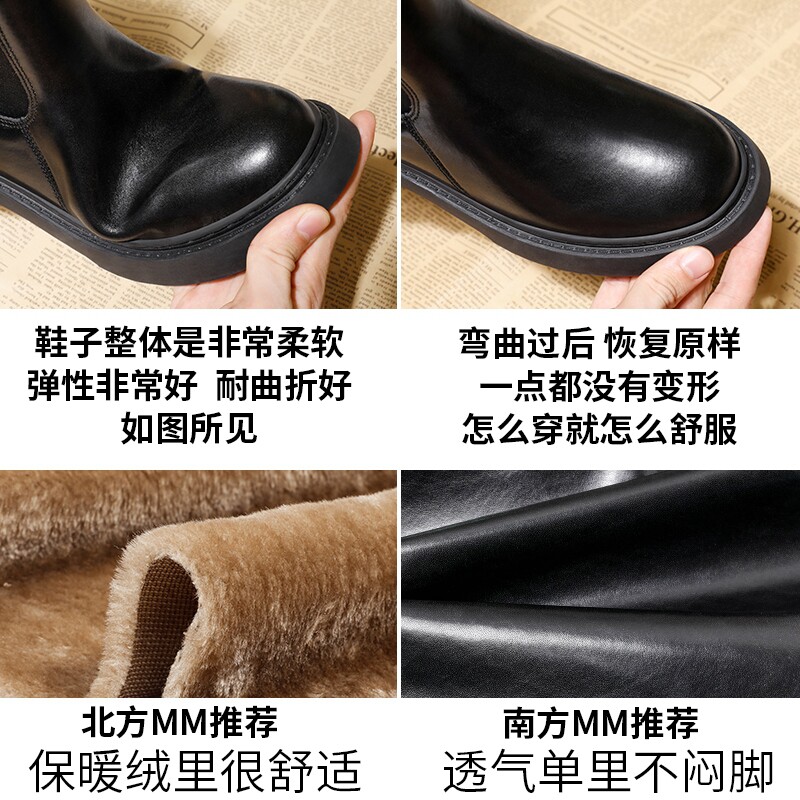 South Korean tide brand leather Chelsea short boots women 2022 spring and autumn new smoke tube boots flat martin boots women British style