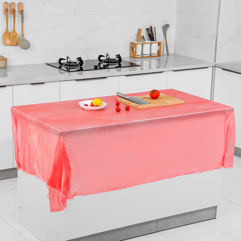 Disposable tablecloth plastic film thickened hotel wedding red transparent rectangular household round table tablecloth