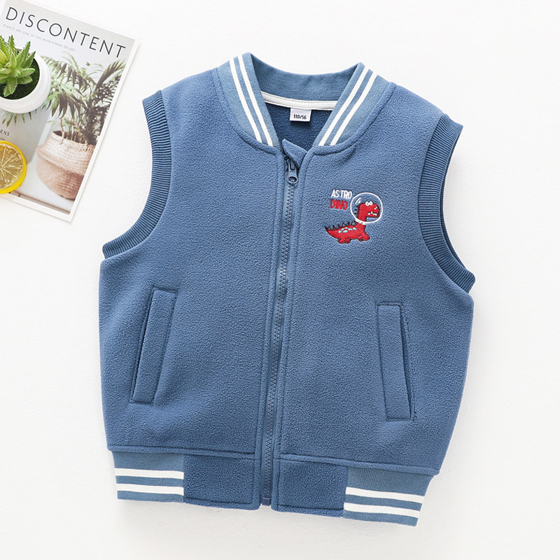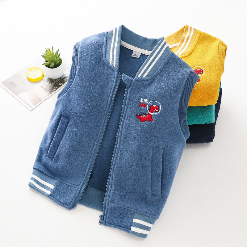 Boys' fleece baseball suit vest Spring and autumn Baby boys' grained fleece shoulders Children wear horse clip autumn vests