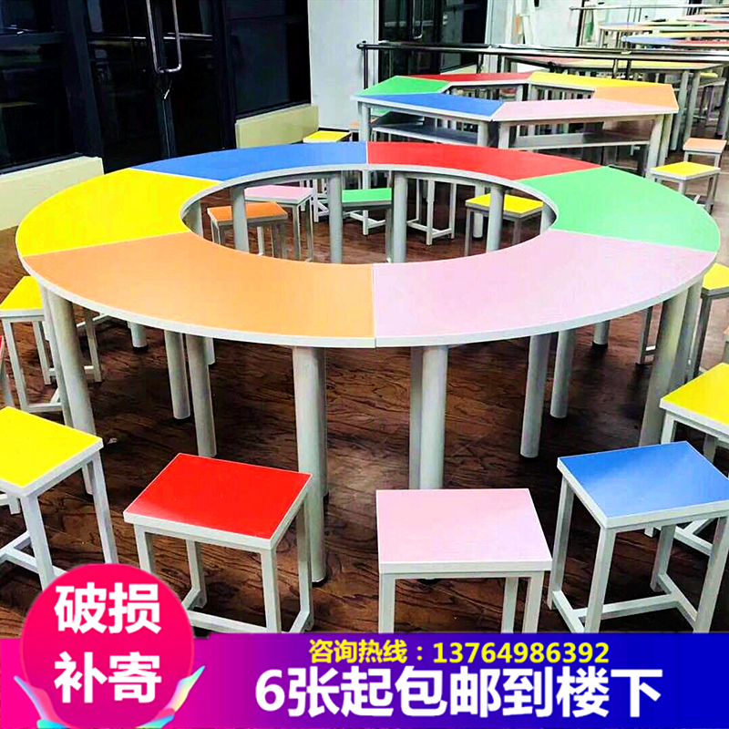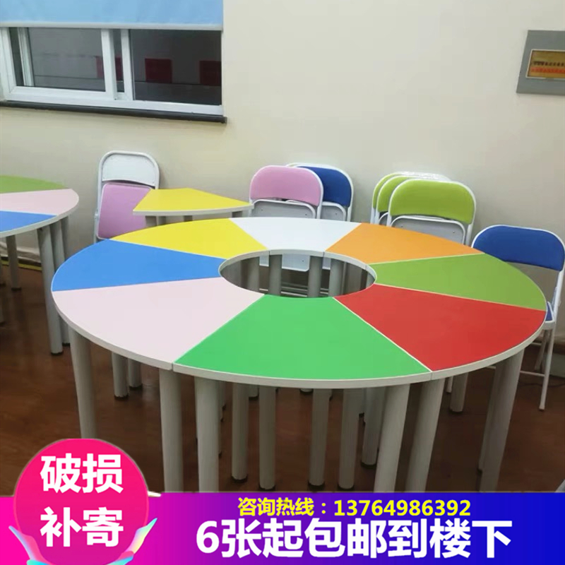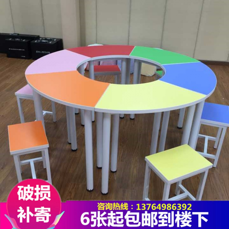 Center Student Desk and Chair Psychology Group Round Table Training Table Color Activity Visiting Classroom Table