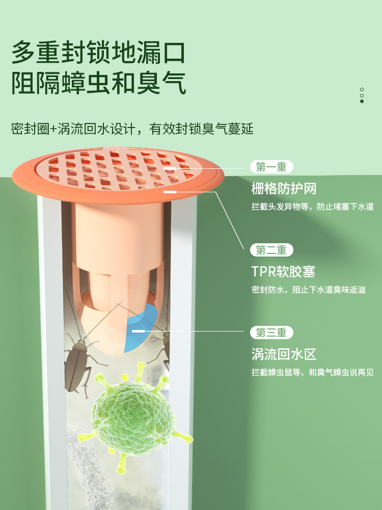 Sewer floor leak deodorizer intubation port toilet seal plug makeup room anti-smell anti-odor artifact anti-insect cover core