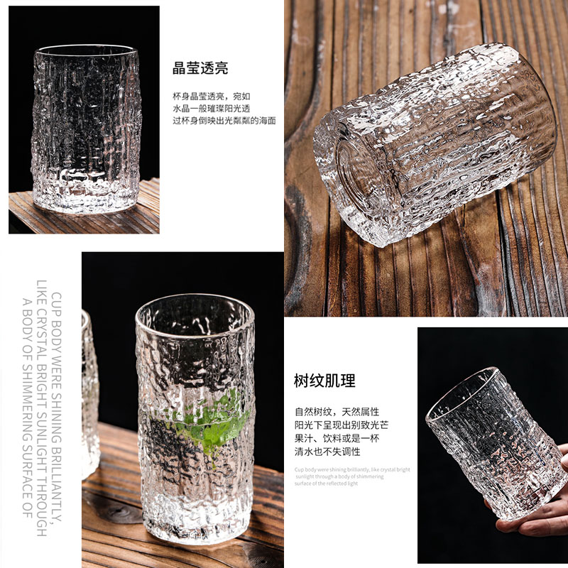 Bark pattern glass ins wind high value creative heat-resistant thickened glass juice cup sparkling water cup milk cup