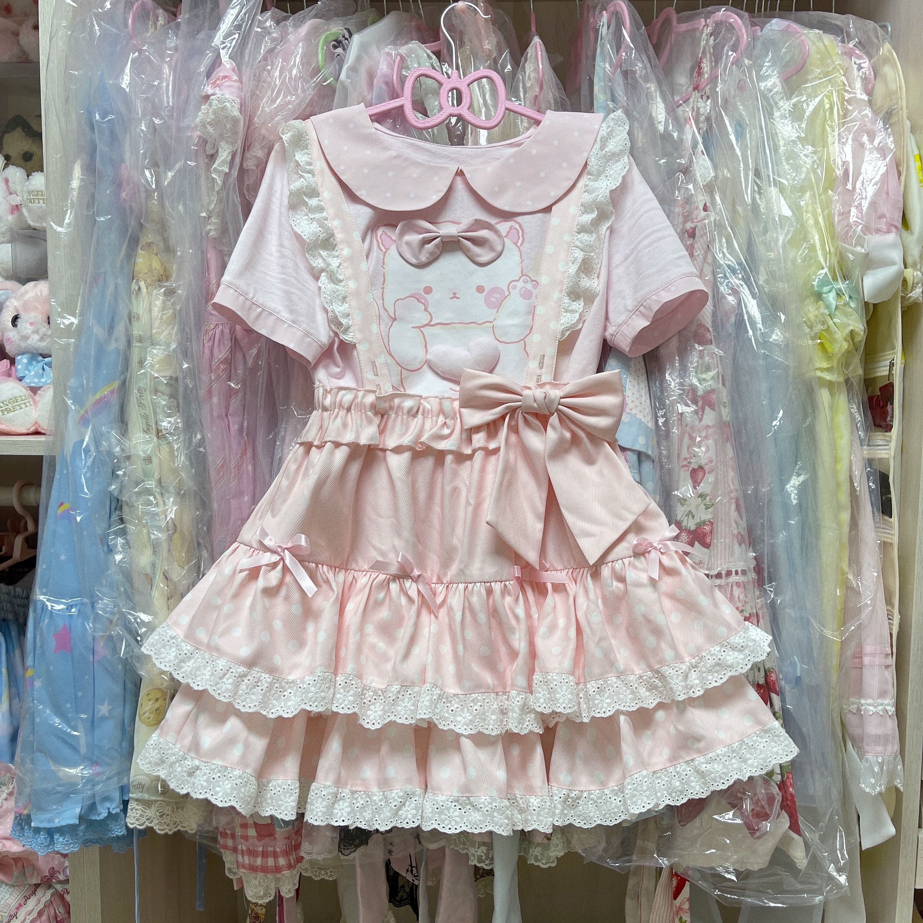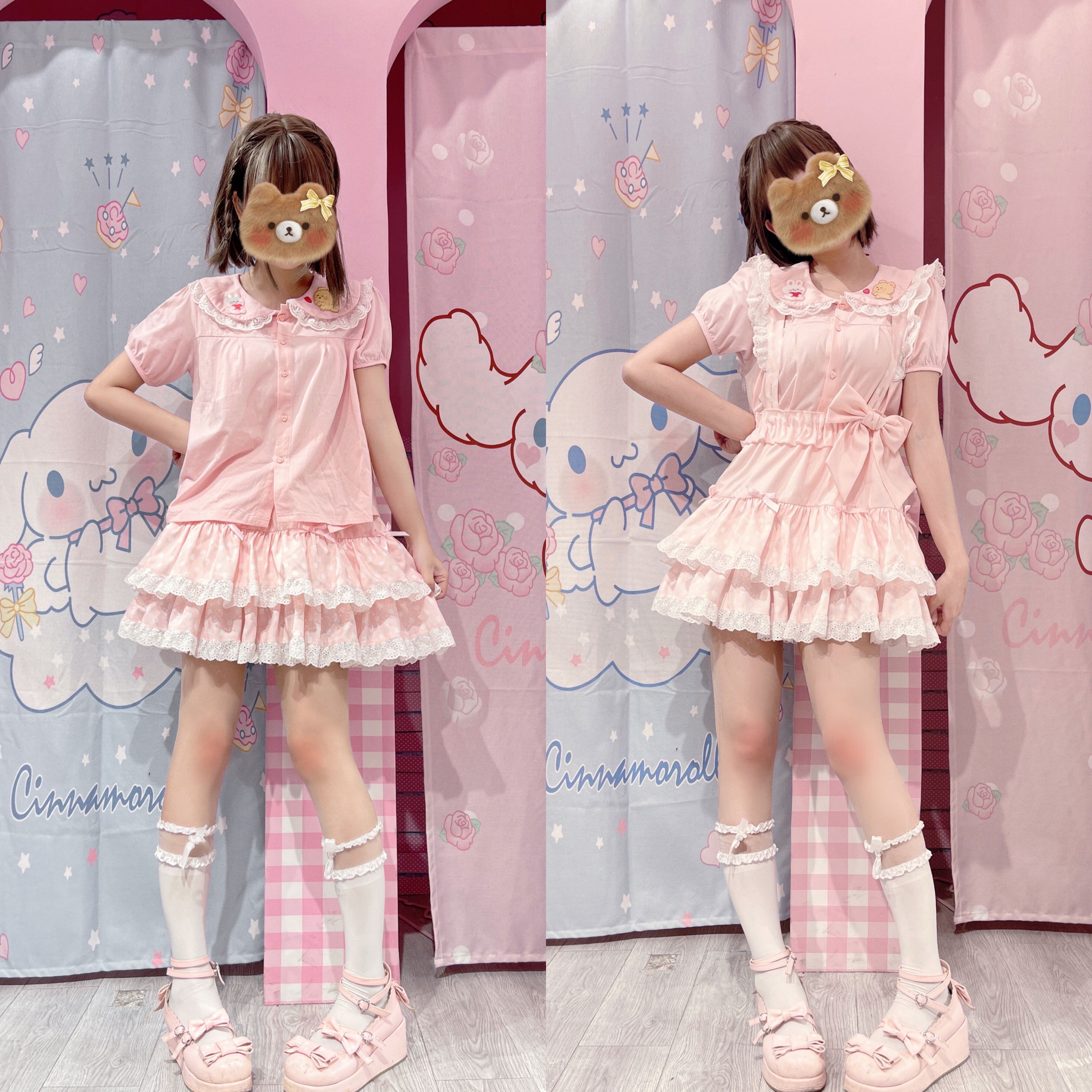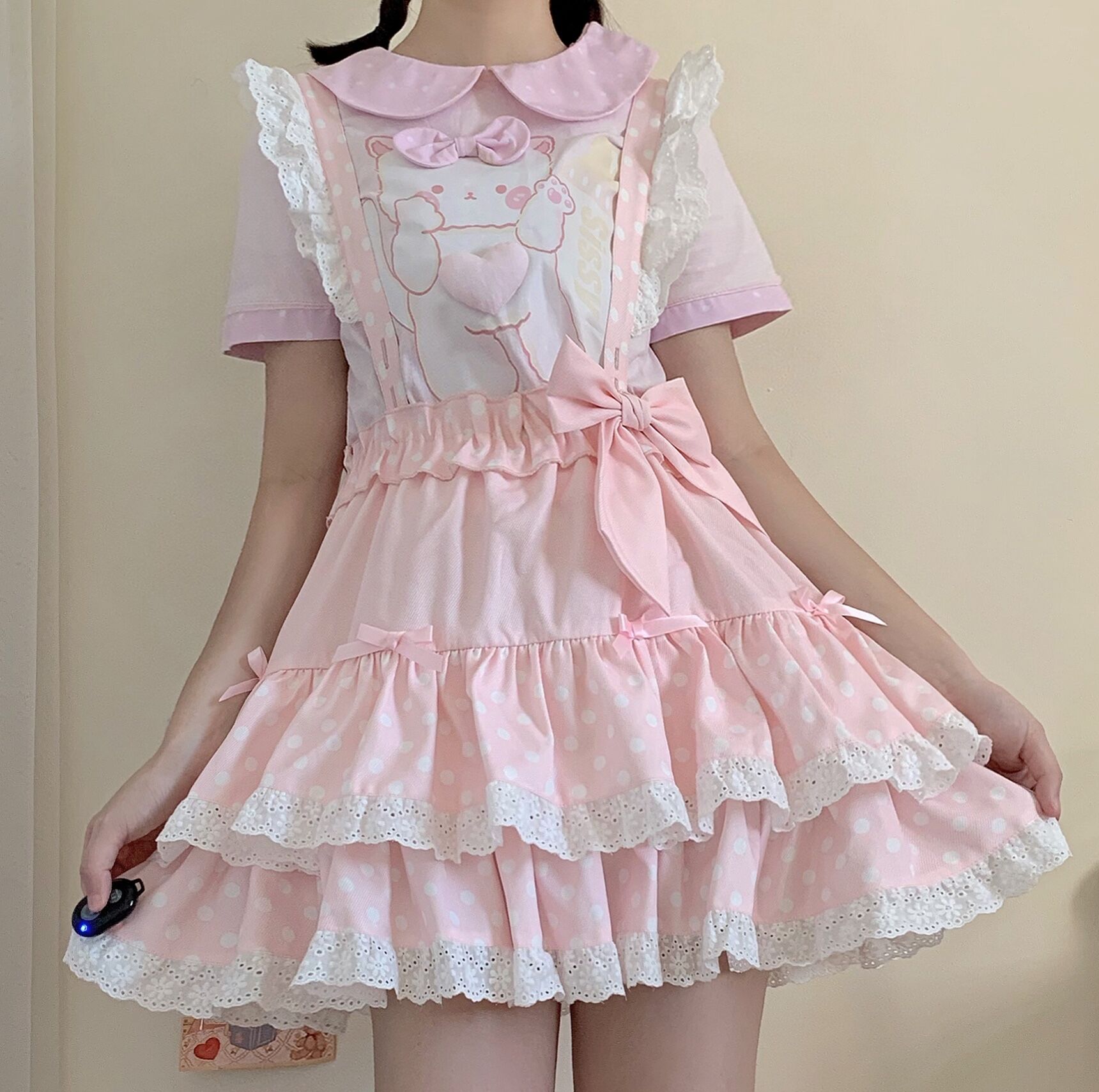 Spot original-little milk meow-summer soft girl cute pink T-shirt polo spot cake skirt set thin miniskirt