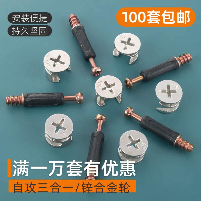 Furniture two-in-one connector positioning Self-tapping assembly screws Eccentric hardware Whole house custom three-in-one accessories