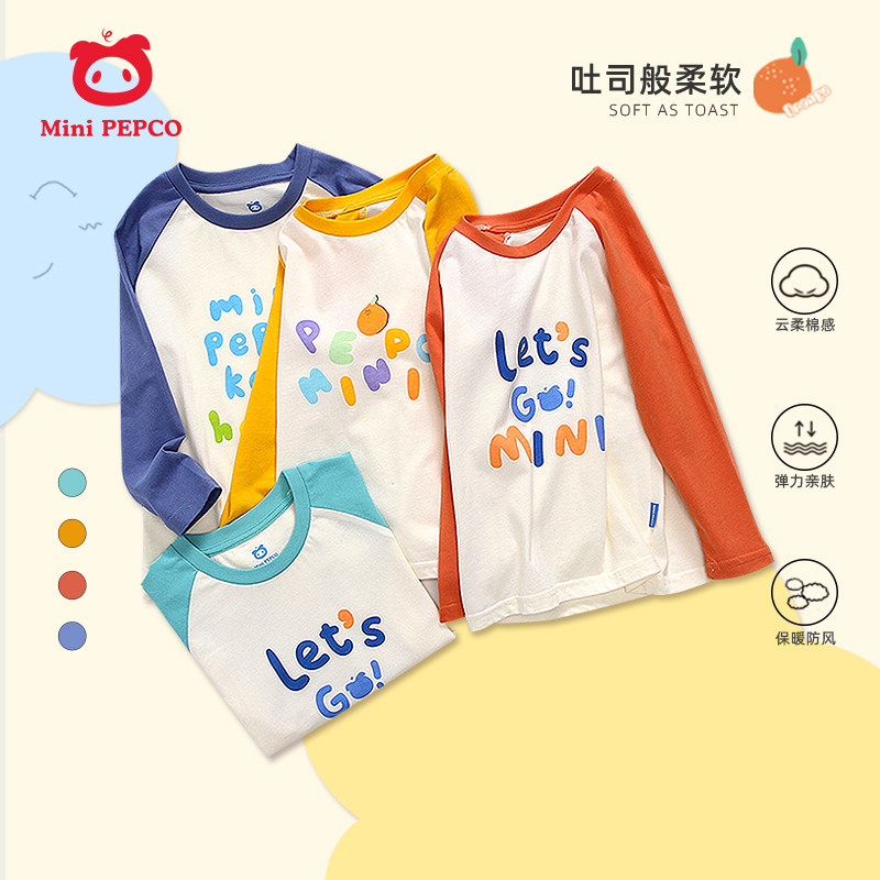 Pig Banner Children Long Sleeve T-shirt Spring and Autumn Boy Baby Shop Girl Pure Cotton Round-collar Cotton Spring Clothing