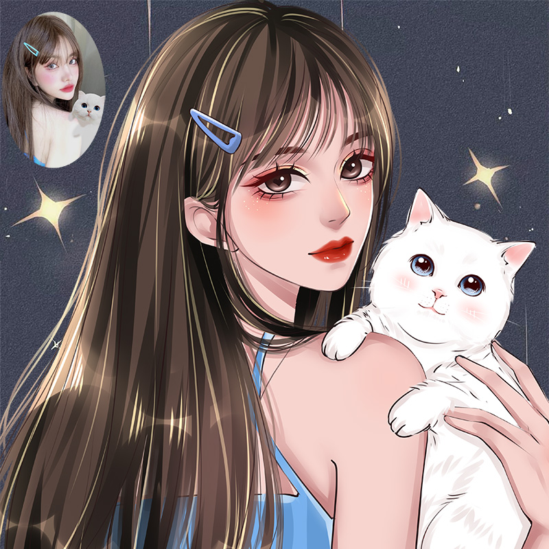 Cute hand-painted avatar custom painted head portrait sketch cartoon lovers live-action photo WeChat avatar design