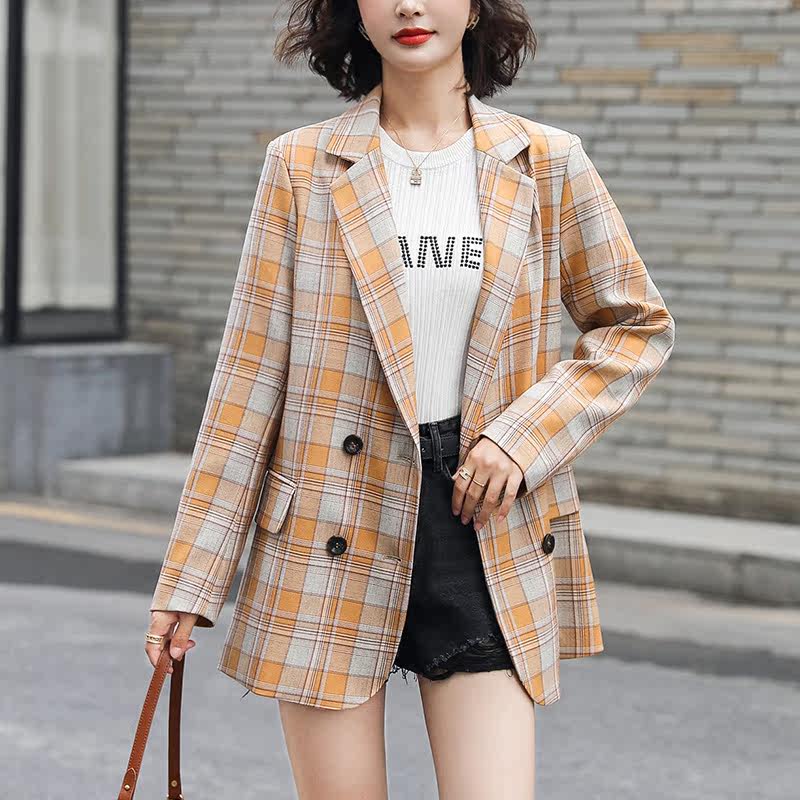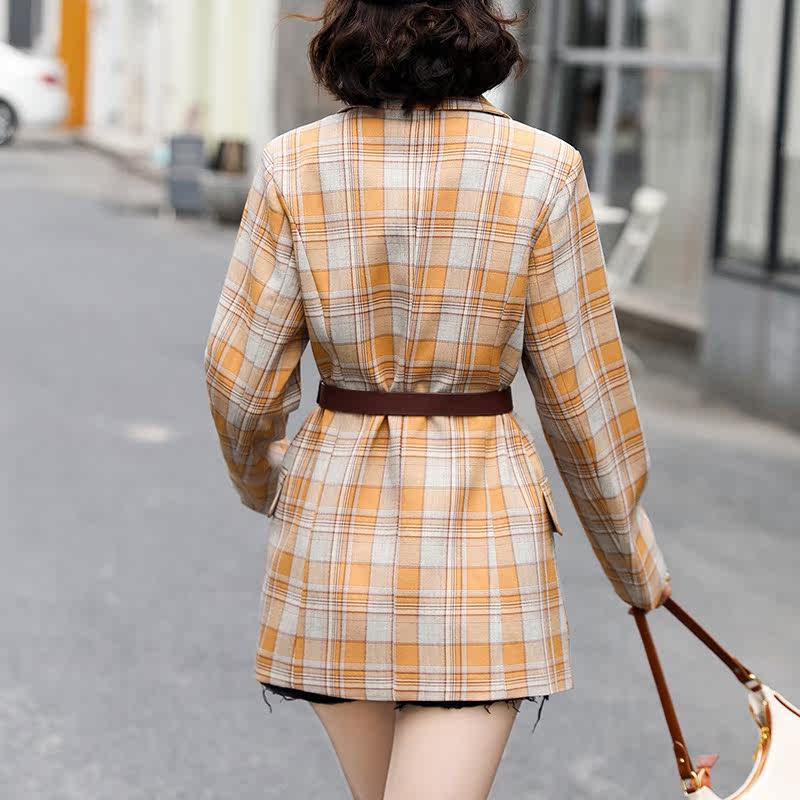 Small sub-spring-autumn-thin-style plaid suit jacket female fashion 2021 new fall Korean version Inn Wind Little Western suit