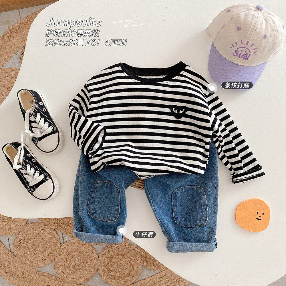 Boys and girls 2022 spring and autumn new Korean version of small and medium-sized children's patch cloth foreign style jeans casual pants Harem trousers