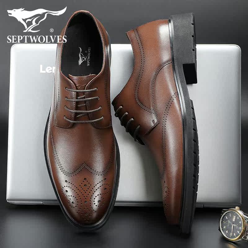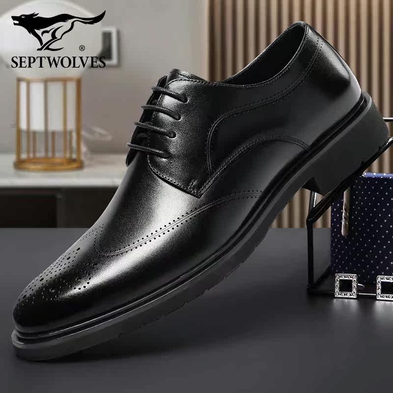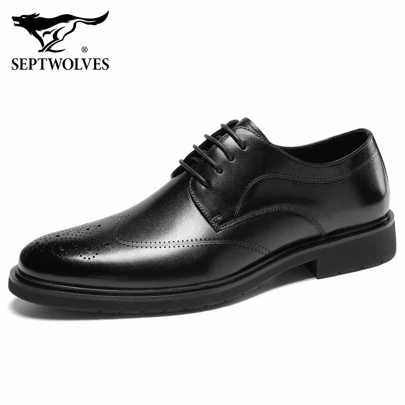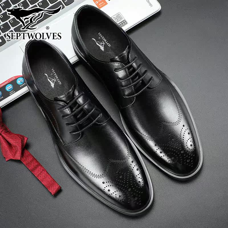 Septwolves men's shoes summer breathable brogue carved British casual leather shoes black men's genuine leather business formal shoes