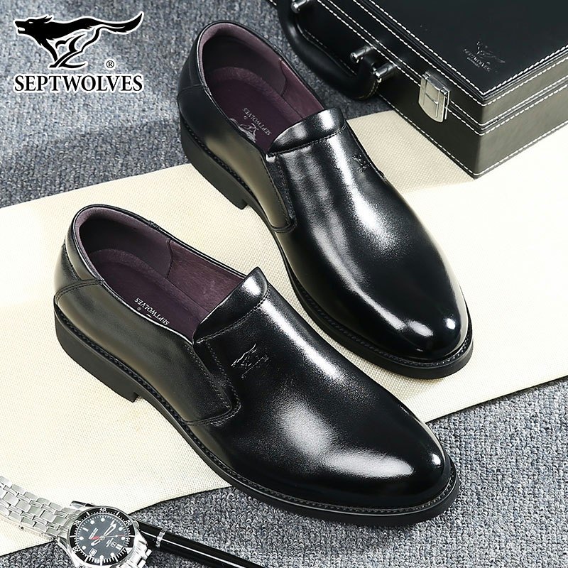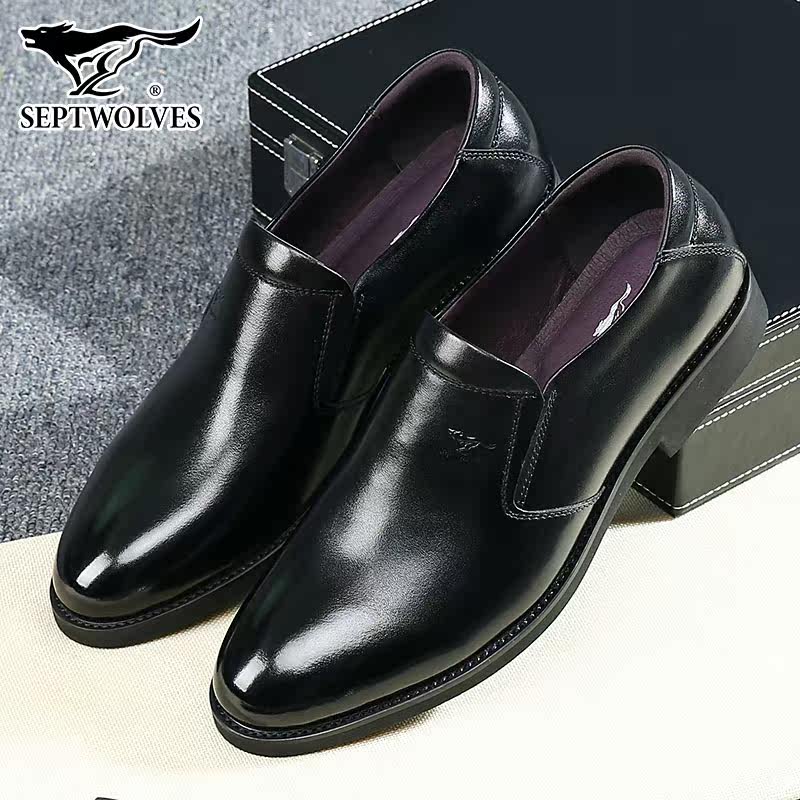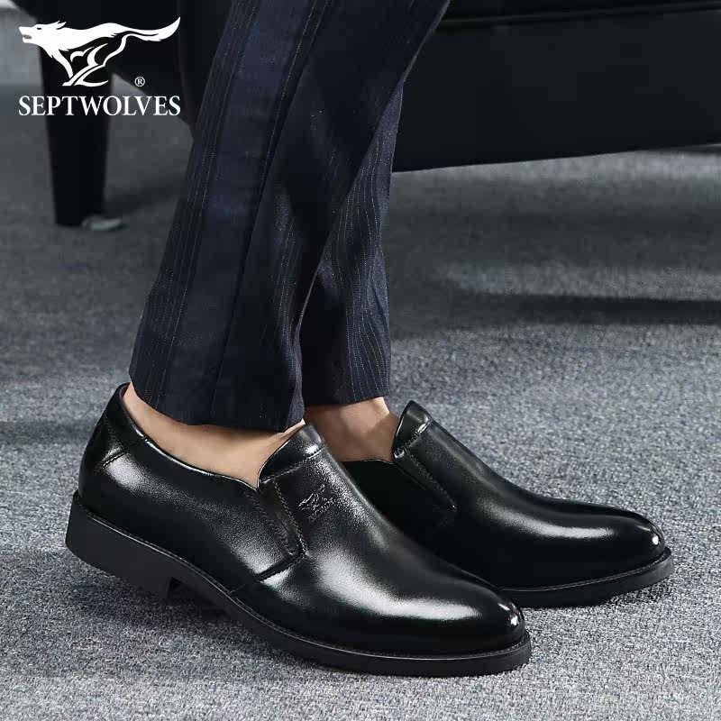 Septwolves men's shoes spring slip-on shoes leather sleeves business casual formal dress Korean version leather men's leather shoes