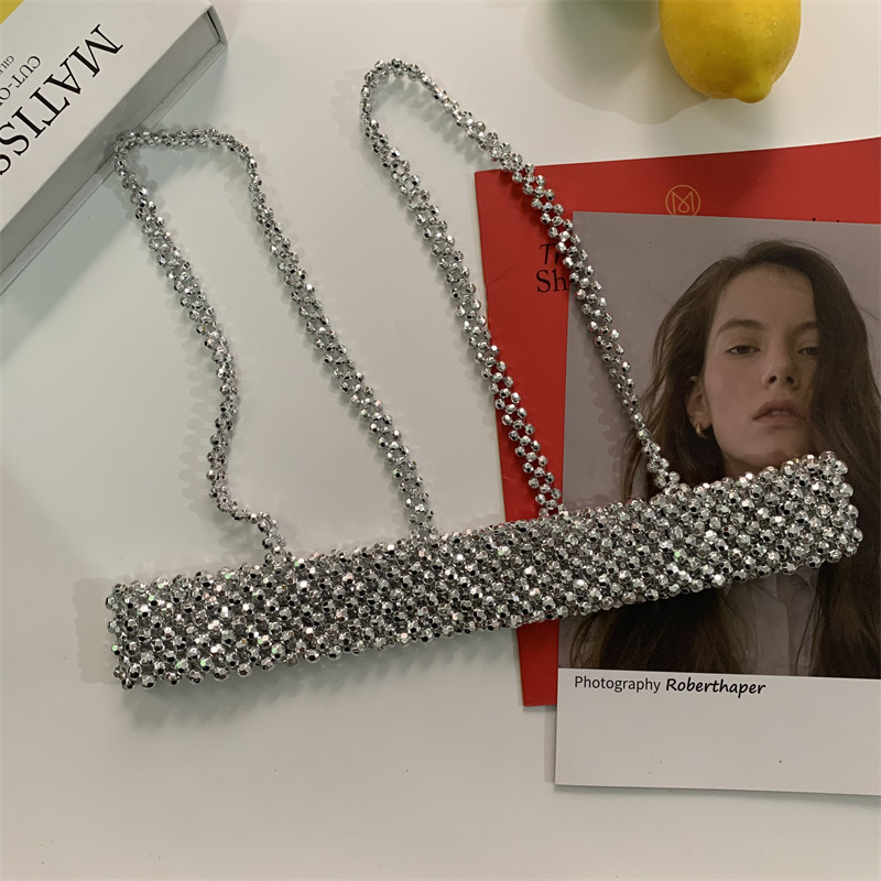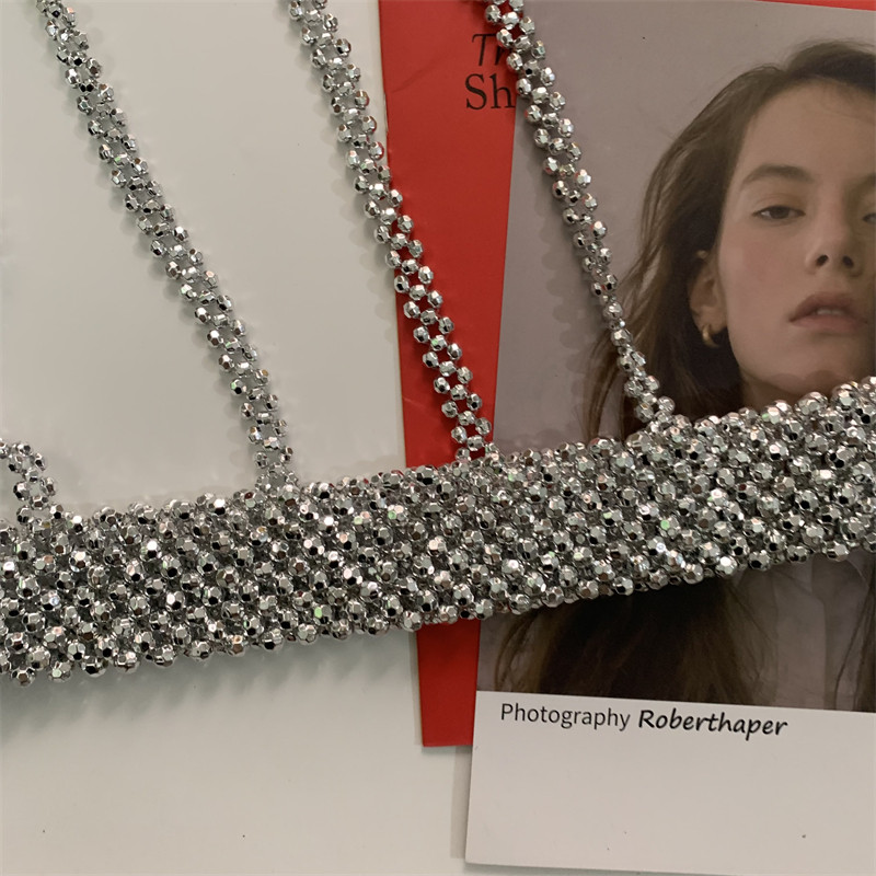 2022 shiny silver pearl suspenders girdle Korean version fashion all-match belt decoration with skirt suit vest