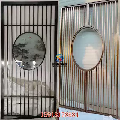 Stainless steel screen titanium alloy new Chinese-style entrance partition hollow decoration custom-made light luxury hotel background wall
