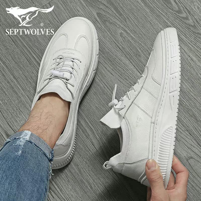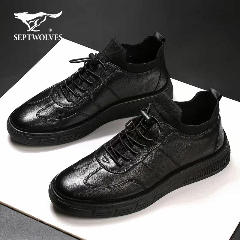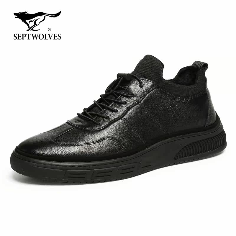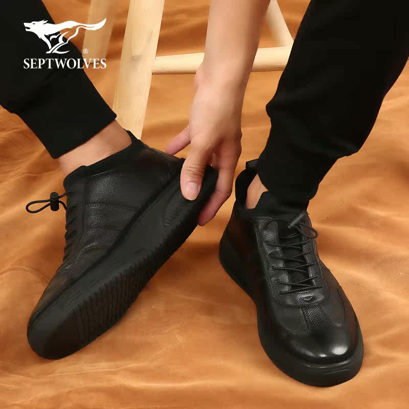 Septwolves men's shoes winter men's casual shoes plus velvet tide leather British shoes warm youth casual leather shoes men
