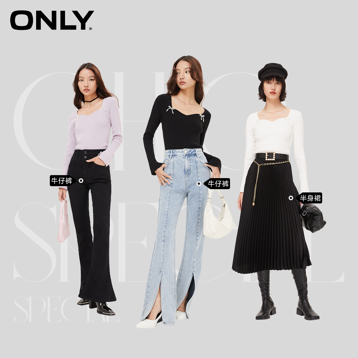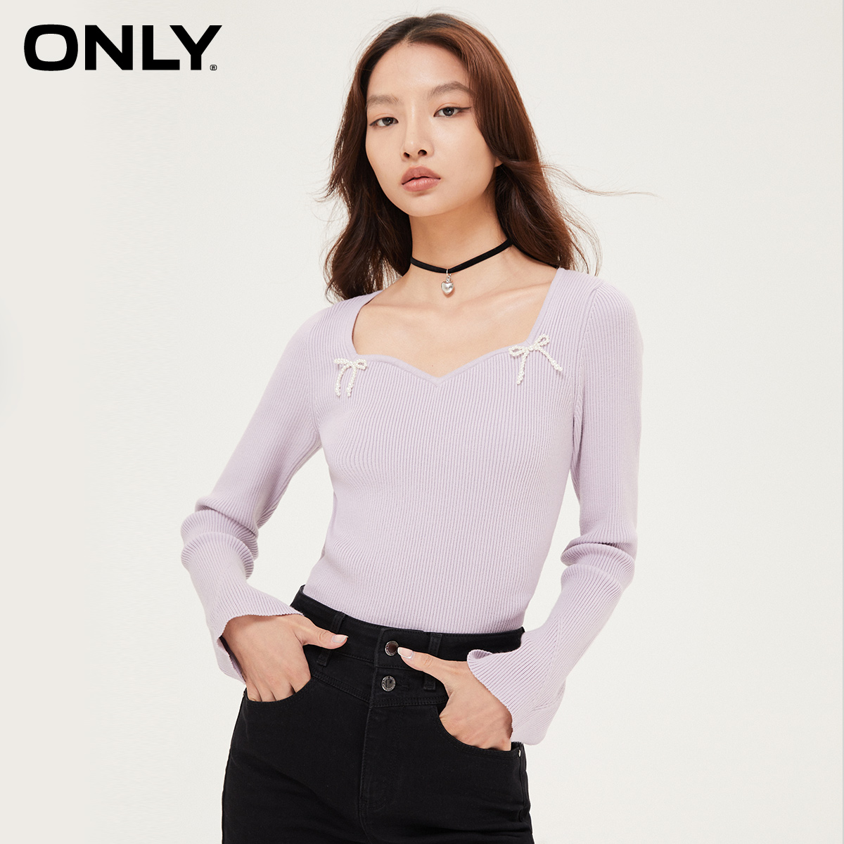 ONLY repair body slim fit 100 hitch bow tie decoration square collar bottom-knitted sweatshirt woman) 121324032