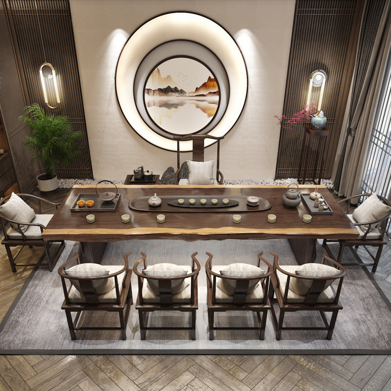 Kongfu tea table solid wood tea table and chairs combined large plate log tea table integrated new Chinese meditation office tea table