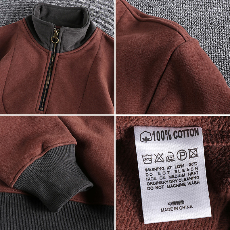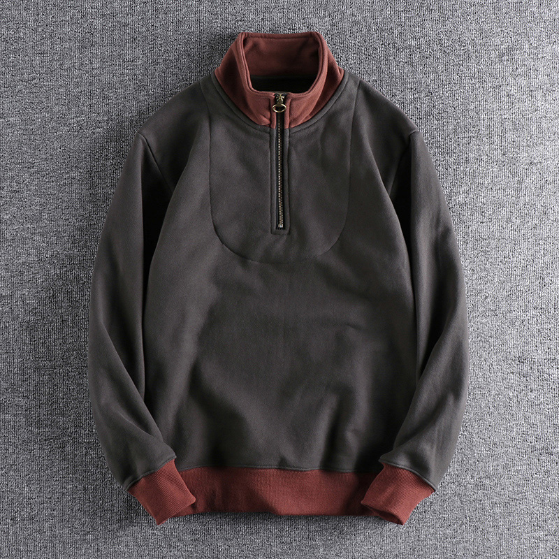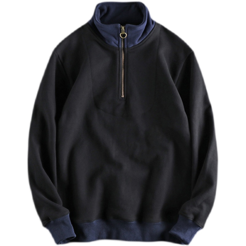 New velvet thickened half-open stand-up collar men's trendy sweater contrast color American youth pullover top coat