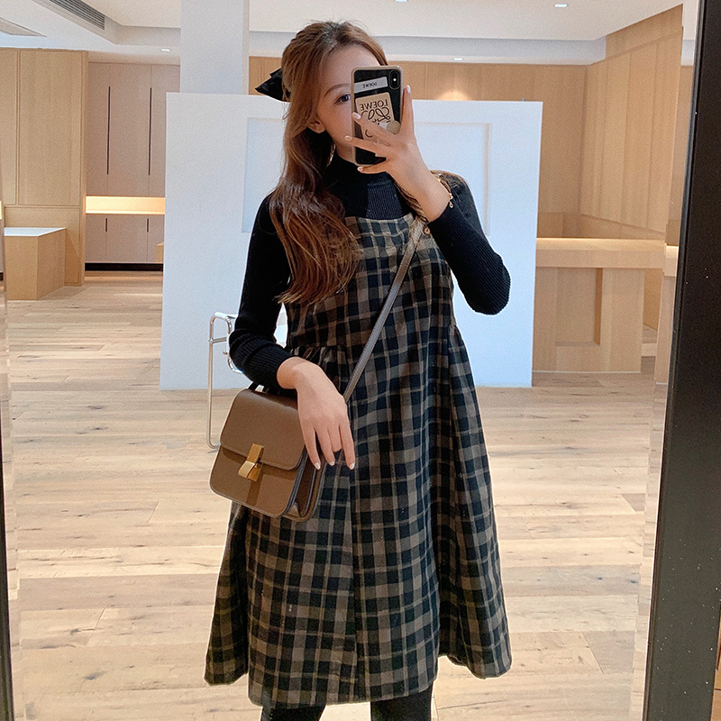 Pregnant Woman Spring Dress Suit Fashion style Outgoing Foreign Pie Loose Plaid Cuddling Bag Foreign Dress Sweaters Undershirts Two Sets