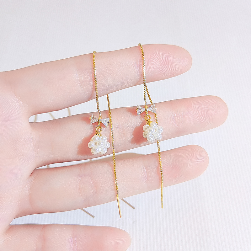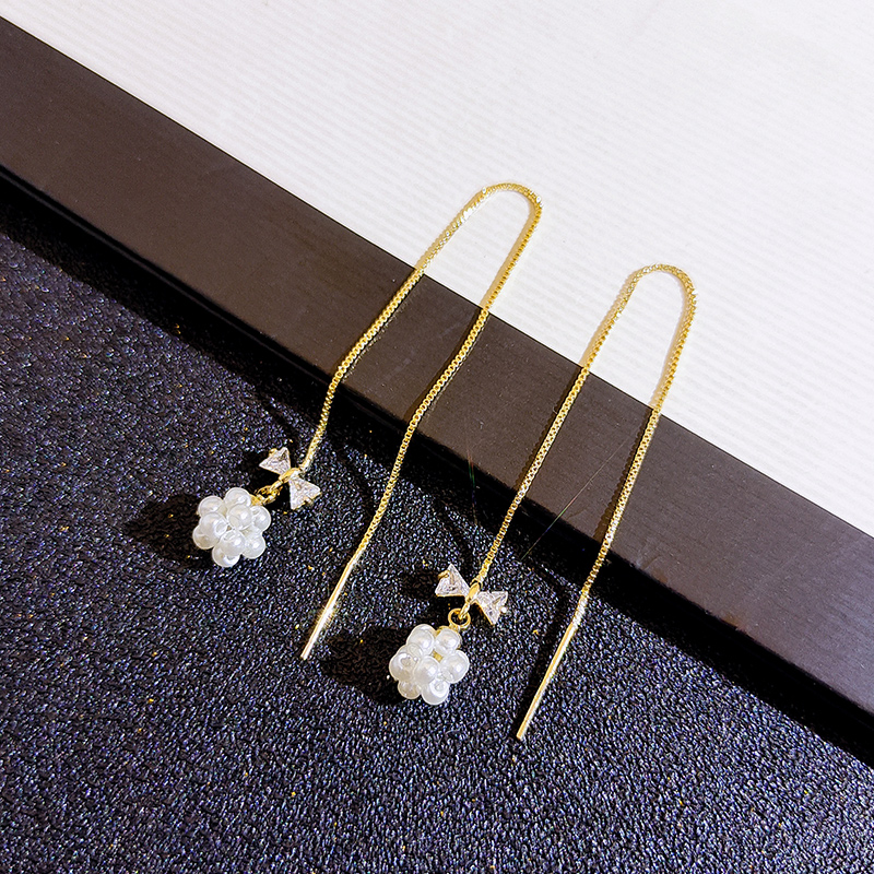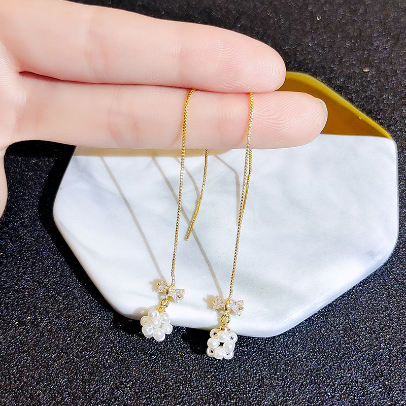 Butterfly Knot Earrings 2022 New Tide Pearl Earrings Female Long Version Temperamental Fluke Earrings Mesh Red Unique Ear Necklace