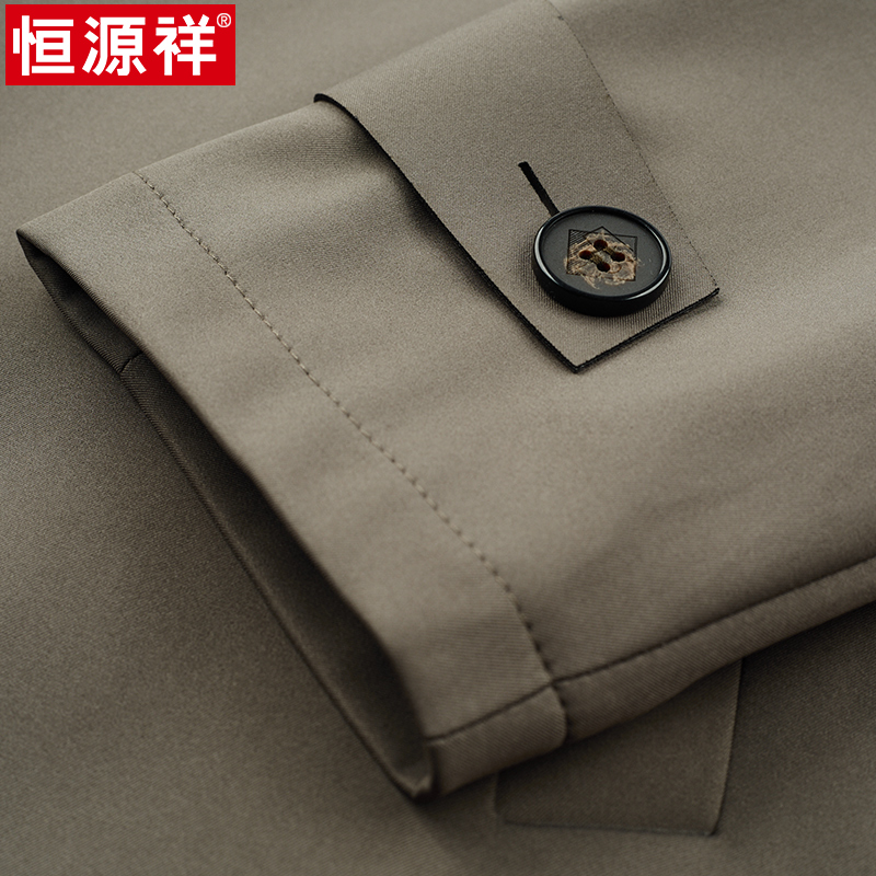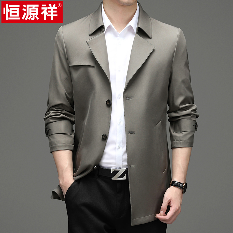 Hengyuanxiang spring and autumn new windbreaker men's medium and long version business casual men's clothing middle-aged men's lapel jacket father's clothing