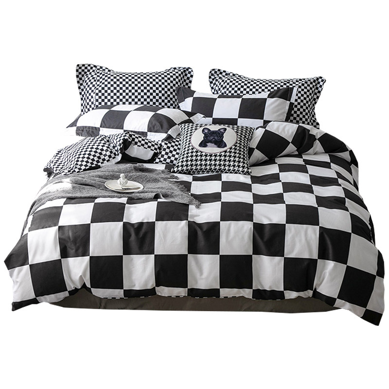 Four pieces of covered pure cotton 100 All cotton European and American wind minimalist black and white sheet Personality Stripe quilt cover 1 2 bed Ogasawara three sets