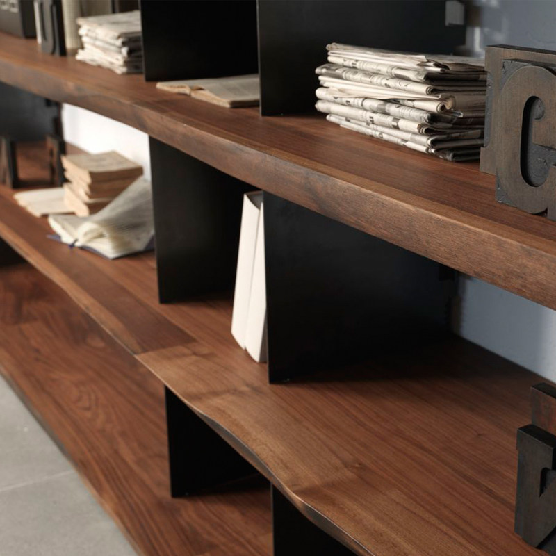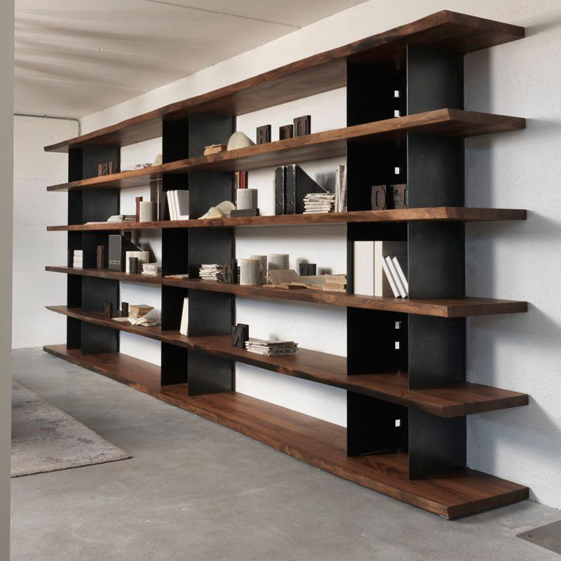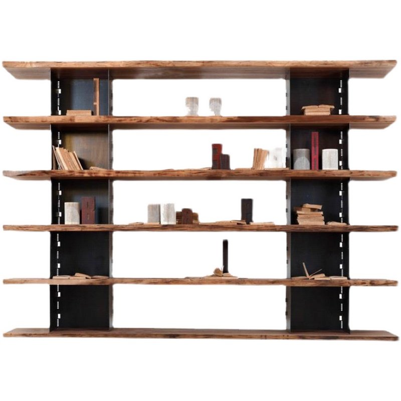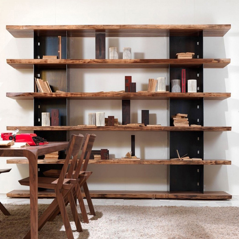 Nordic wrought iron solid wood wall-to-wall bookshelf floor-to-ceiling office shelf living room industrial study shelf display
