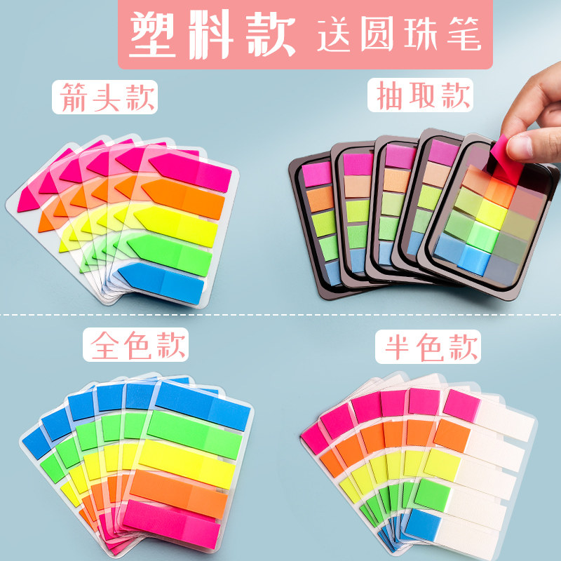 Post-it stickers index label paper can write and mark small strips of plastic bookmark marks students use transparent instructions page number fluorescent film color net red convenience stickers sticky strong n-time classification paper