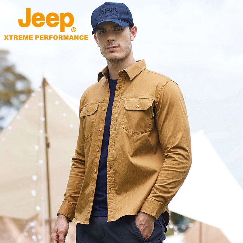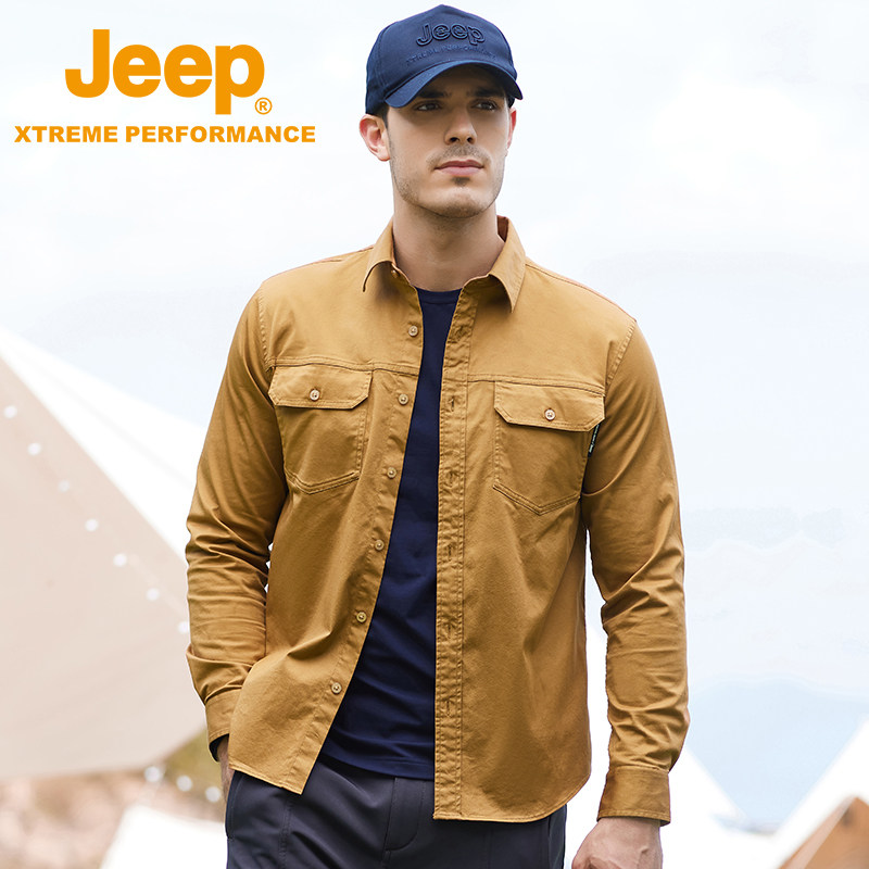 Jeep Tooling Shirt Male Long Sleeve Multiple Pockets Autumn Clothing Blouses Outdoor Leisure 100 Hitch Middle-aged Dad Shirt Jacket-Taobao