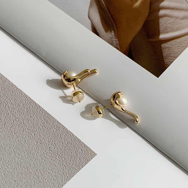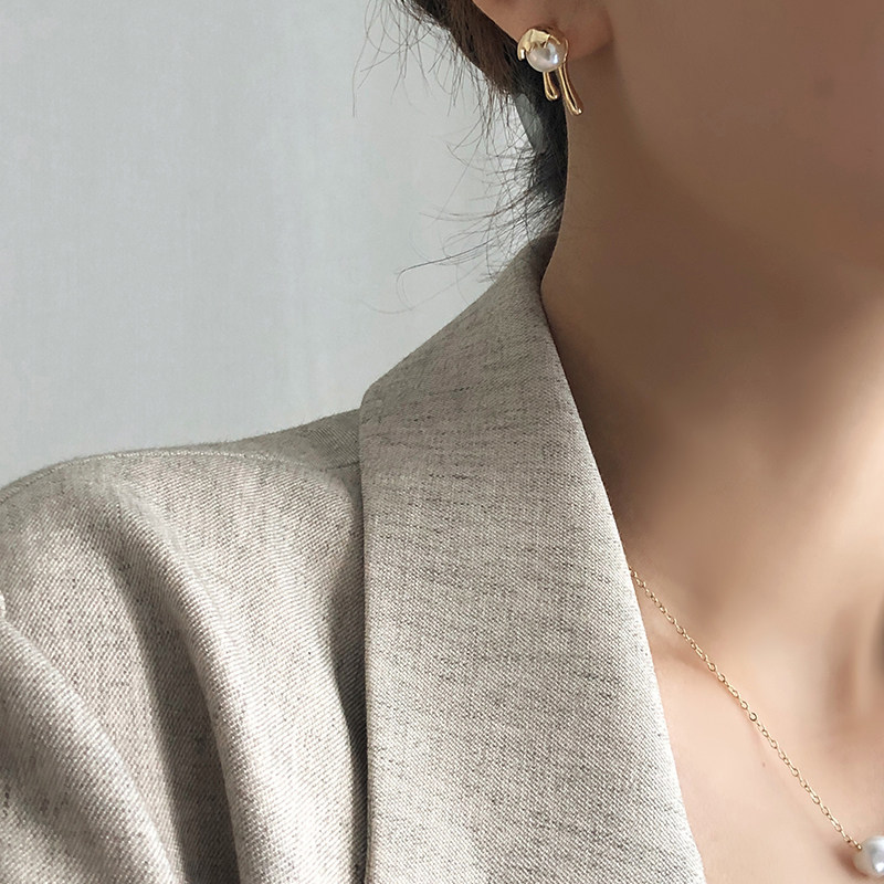 (shen view life) Aunt Choi Eternal spoon Ear Nail Metal Ethos Light Extravagant and Pearls of Pearl Ears Jewelry-Taobao
