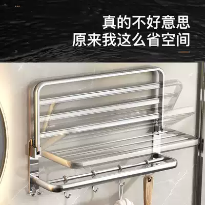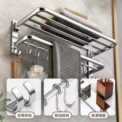 Toilet towel rack bathroom folding towel rack 304 stainless steel toilet bathroom rack Wall wall-free hole