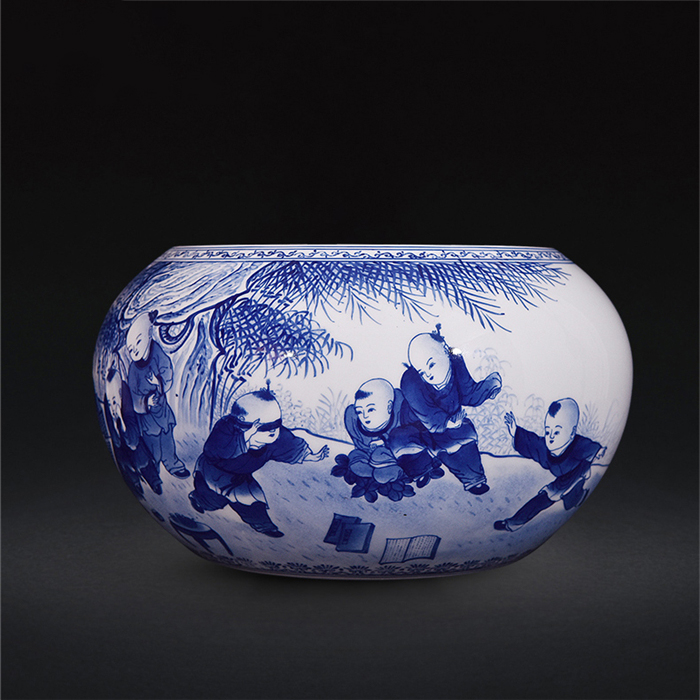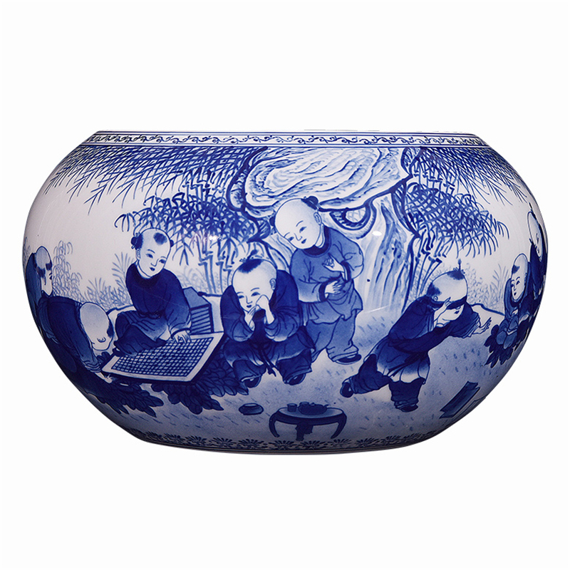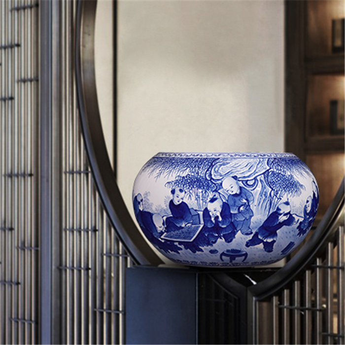 Jingdezhen ceramic fish tank hand-painted blue and white children play Chinese-style living room home fish farming decoration handicraft decoration