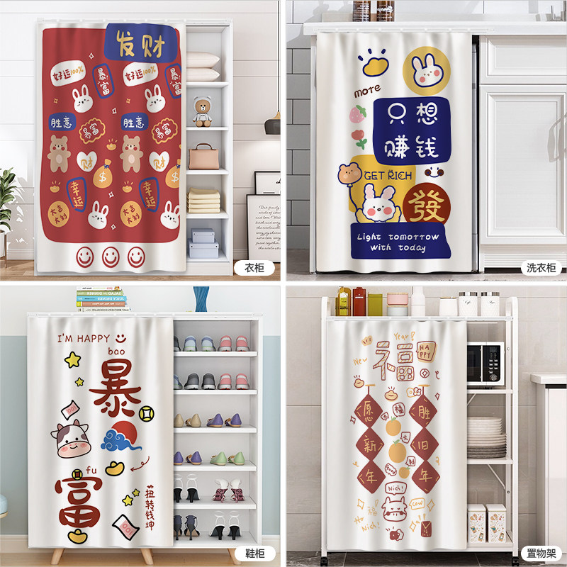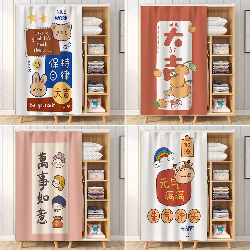 Wardrobe shielded curtain free of punch SIMPLE CABINET DOOR CURTAIN DECORATION ANTI-DUST CLOTH CURTAIN CAN MOVE SLIDE RAIL SHOES CABINET LADS CURTAIN