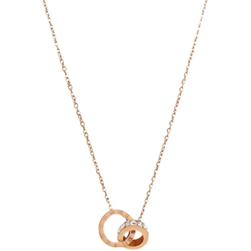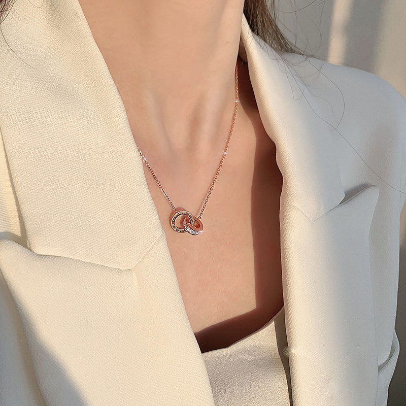 Korean Roman numeral double ring necklace female 18k gold light luxury niche net red collarbone chain does not fade temperament necklace