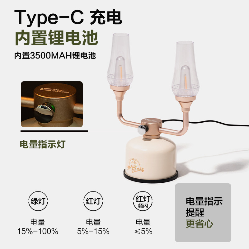 Mugaodi exquisite camping retro atmosphere camp light double head LED charging camp tent light waterproof camping light XZ