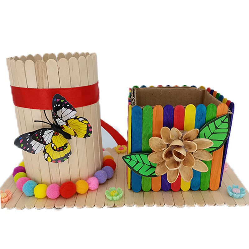 Ice cream stick containing box pen holder finished machine ladybug finished product Other finished products can be set for finished guitar Colour small yellow man pen holder Egg Box Cartoon Small Animal Ice Cream Stick Ice Cream Stick of Ice Cream Stick of Snowflake Snow